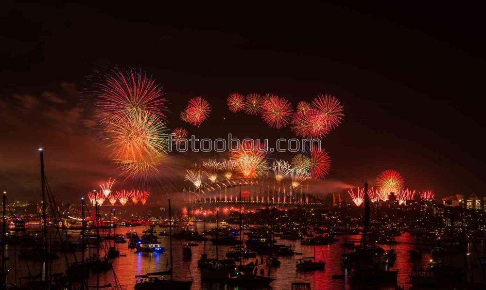 Фотообои Новогодний фейерверк над Сиднеем, aртикул: 4616